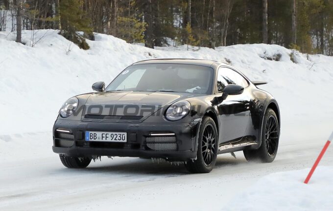 Porsche ha iniziato a lavorare sul restyling di metà carriera dell’attuale 911, ovvero la generazione 992. Dopo i primi scatti di un paio di settimane fa di una versione rinnovata della 911 Turbo, i nostri fotografi oggi ci propongono delle nuove foto spia che hanno per protagonista il prototipo, impegnato nei test invernali sulla neve, della nuova Porsche 911 Safari, a sua volta basata sul restyling della sportiva di Stoccarda.