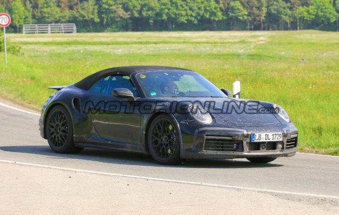 Porsche è impegnata da un po’ tempo con i test della nuova 911 Turbo, ma finora abbiamo visto soltanto il modello coupé. Questa volta però i nostri fotografi hanno immortalato per la priva volta la nuova Porsche 911 Turbo Cabrio, con questo nuovo set di foto spia che ce la mostra durante dei collaudi sulle strade della Germania.