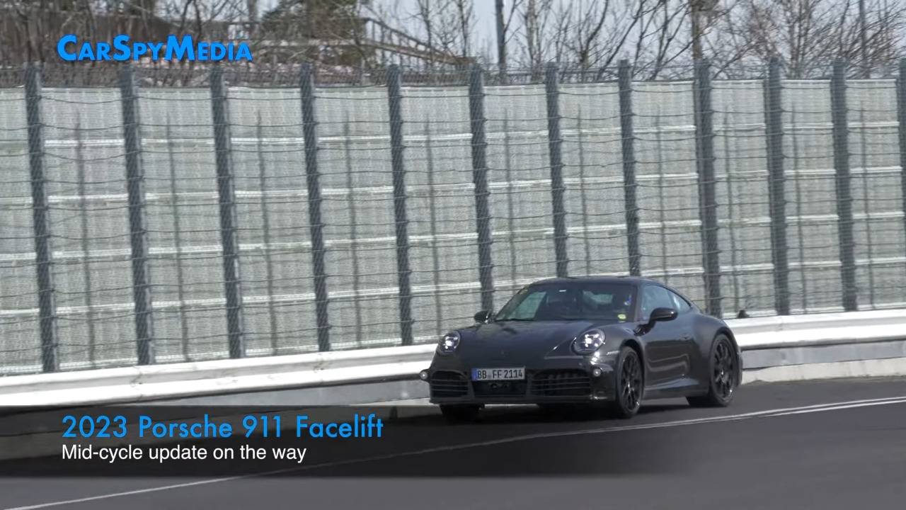 L’ultimo video spia pubblicato su YouTube da CarSpyMedia conferma il proseguimento dello sviluppo della 911 2023 con un prototipo semi-camuffato avvistato sul circuito del Nurburgring mentre effettuava alcuni giri di prova alle alte velocità.