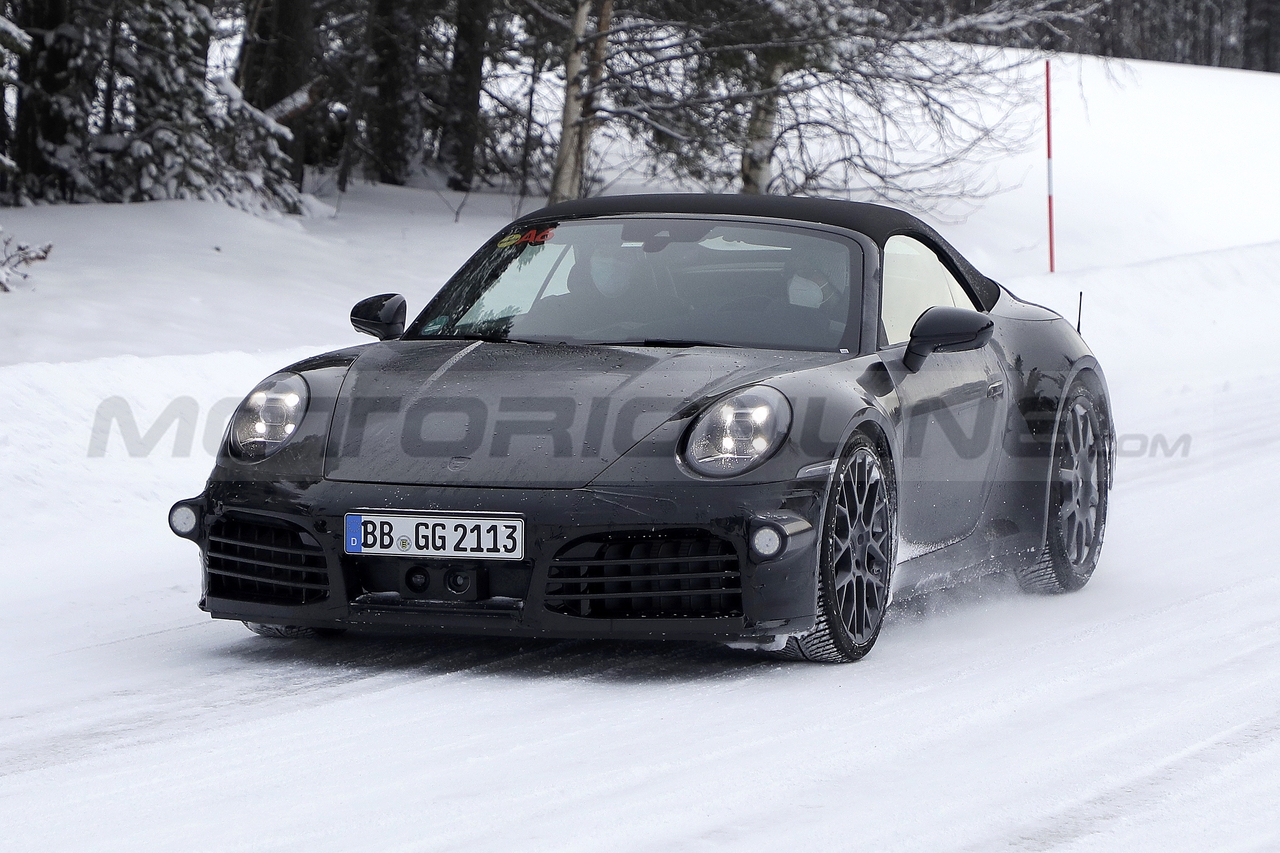 Come è possibile vedere negli scatti “rubati”, il muletto dispone di poco camuffamento, ma alcuni elementi della carrozzeria sono ancora coperti, come gli indicatori di direzione disposti sui parafanghi anteriori. Inoltre, la cosa particolare di questa 911 Cabrio è che è stata testata con due diversi set di cerchi.