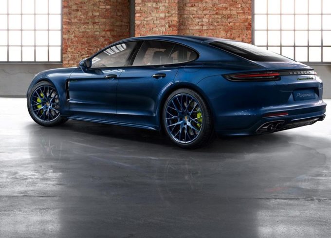 Tra le novità che balzano immediatamente all’occhio guardando le immagini di questa Panamera Turbo S E-Hybrid c’è senza dubbio il colore della carrozzeria, un’inedita e profonda tinta blu che Porsche Exclusive Manufaktur chiama Night Blue Metallic. Ma questo non è l’unico aggiornamento sull’auto, che si è arricchita anche di nuovo pacchetto Sport Design che aggiunge una nuova griglia anteriore al frontale e un nuovo diffusore a quattro alette sul posteriore. In più troviamo anche dei nuovi cerchi da 21 pollici con razze a Y verniciati anch’essi in Night Blue Metallic, fanali posteriori a LED e nuovo sistema di scarico sportivo.