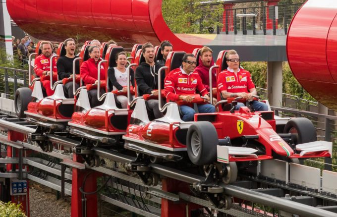 Raikkonen e Gené sono saliti anche sull’acceleratore verticale Red Force: il roller coaster più alto e più veloce in Europa, simbolo di velocità, tecnologia e innovazione. Il pilota della Casa di Maranello ha così passato alcuni momenti di relax nel tour alle scoperta del nuovo parco divertimento che offre undici per tutta la famiglia, ovviamente all’insegna della passione per il Cavallino.