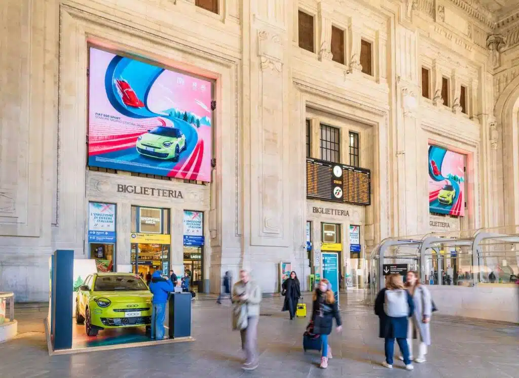 Inoltre, la Digital Domination ha amplificato la presenza della campagna targata Stellantis: 165 schermi LED del circuito digitale di Milano Centrale sono stati, infatti, sincronizzati per trasmettere contenuti coordinati, con l’obiettivo di generare un impatto visivo continuo e ad alta intensità lungo l’intero percorso della stazione.