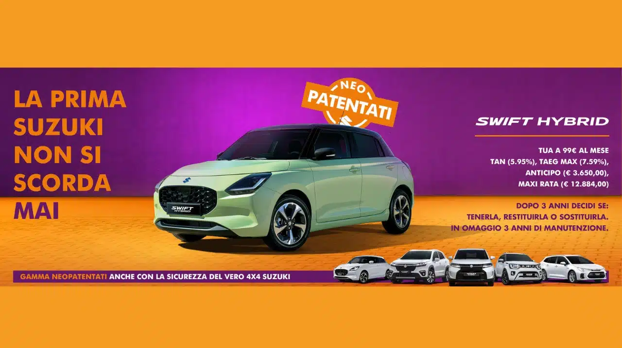 Con l’entrata in vigore delle nuove disposizioni per i neopatentati, Suzuki offre una gamma 100% Hybrid che include modelli ideali per chi inizia a guidare. Tra le opzioni disponibili, l’Ignis Hybrid è disponibile in tutte le versioni, offrendo grande maneggevolezza e versatilità, sia con cambio manuale che automatico e trazione anteriore o 4WD Allgrip Auto. La nuova Swift Hybrid è un’altra scelta perfetta, con una dotazione di alta qualità e basse emissioni di CO2, che consente l’accesso a ZTL come Milano Area C.