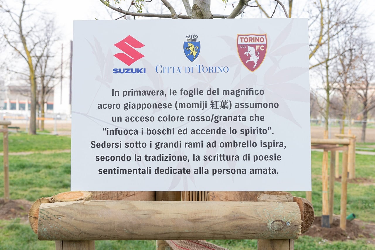 L’iniziativa è sia concreta che simbolica: sono stati piantati 10 aceri giapponesi e 1 liquidambar, scelti per il loro caratteristico colore granata che assumono le foglie durante la primavera. Questa iniziativa richiama sia gli 11 giocatori che scendono in campo nello Stadio Olimpico Grande Torino, sia idealmente suggella gli 11 anni di collaborazione fruttuosa tra Suzuki e il Torino, di cui la Casa giapponese è il Main Sponsor.