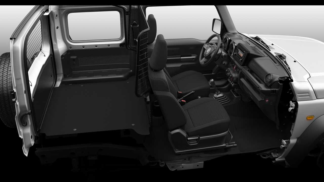 Suzuki Jimny ritorna sul mercato con la sua versione bi-posto e un bagagliaio capiente. Ecco la versione che strizza l’occhio ai professionisti che hanno bisogno di un ampio vano bagagli con pianale piatto e rete divisoria di sicurezza per il carico.