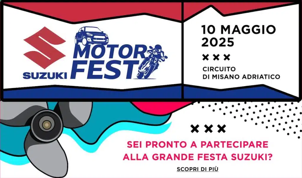Il Suzuki Motor Fest 2025 sarà la festa del marchio giapponese. Ma non vedrà protagoniste solamente le auto e le moto, perché verranno celebrati anche i 60 anni della sezione Marine. L’appuntamento è sempre per sabato 10 maggio, non al circuito Marco Simoncelli, ma alla Marina di Porto Verde, sempre a Misano Adriatico.