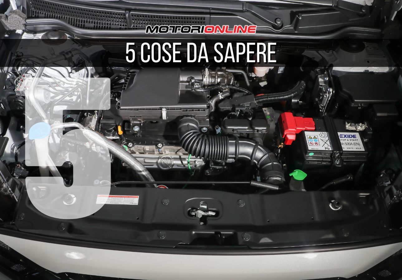 Il sistema ibrido da 140V della casa giapponese è composto da tre motori: il termico 1.5 Dualjet benzina quattro cilindri 102 CV, un piccolo motore elettrico ISG ed il moto-generatore MGU da 24,6 kW, per una potenza complessiva di 115 CV. Oltre, ovviamente, alla batteria da 140V in litio-titanato. Questa unità è disponibile unicamente con il cambio automatico AGS e, grazie a questa soluzione, la vettura può viaggiare in modalità esclusivamente elettrica fino a circa 4,5 km.