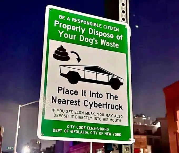 Auto“Usa il Cybertruck più vicino per depositare gli escrementi del tuo cane”: in strada spunta il cartello anti-TeslaLe proteste contro Tesla e Elon Musk assumono forme sempre nuove