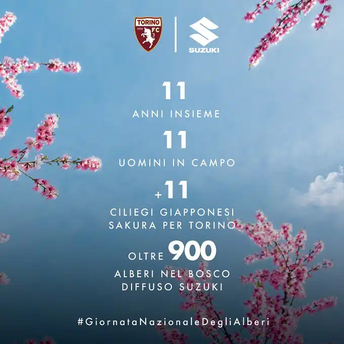 AutoSuzuki e Torino FC celebrano la Giornata Nazionale degli Alberi donando alla città di Torino 11 ciliegi giapponesiSaranno piantati nei pressi dello Stadio Olimpico Grande Torino