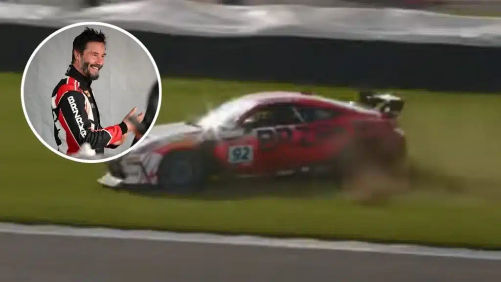Keanu Reeves: debutta a Indianapolis come pilota ma finisce fuori pista [VIDEO]