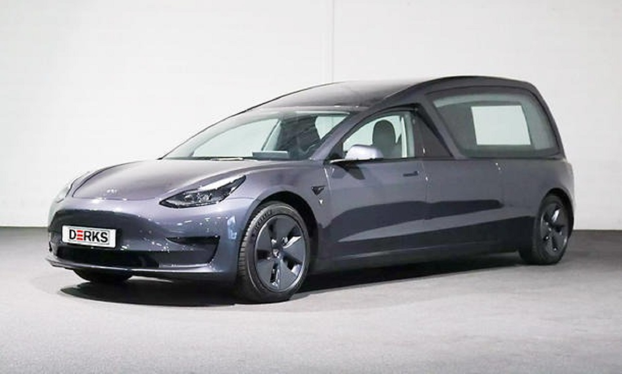 Un'azienda olandese ha trasformato una Tesla Model 3 in un carro funebre