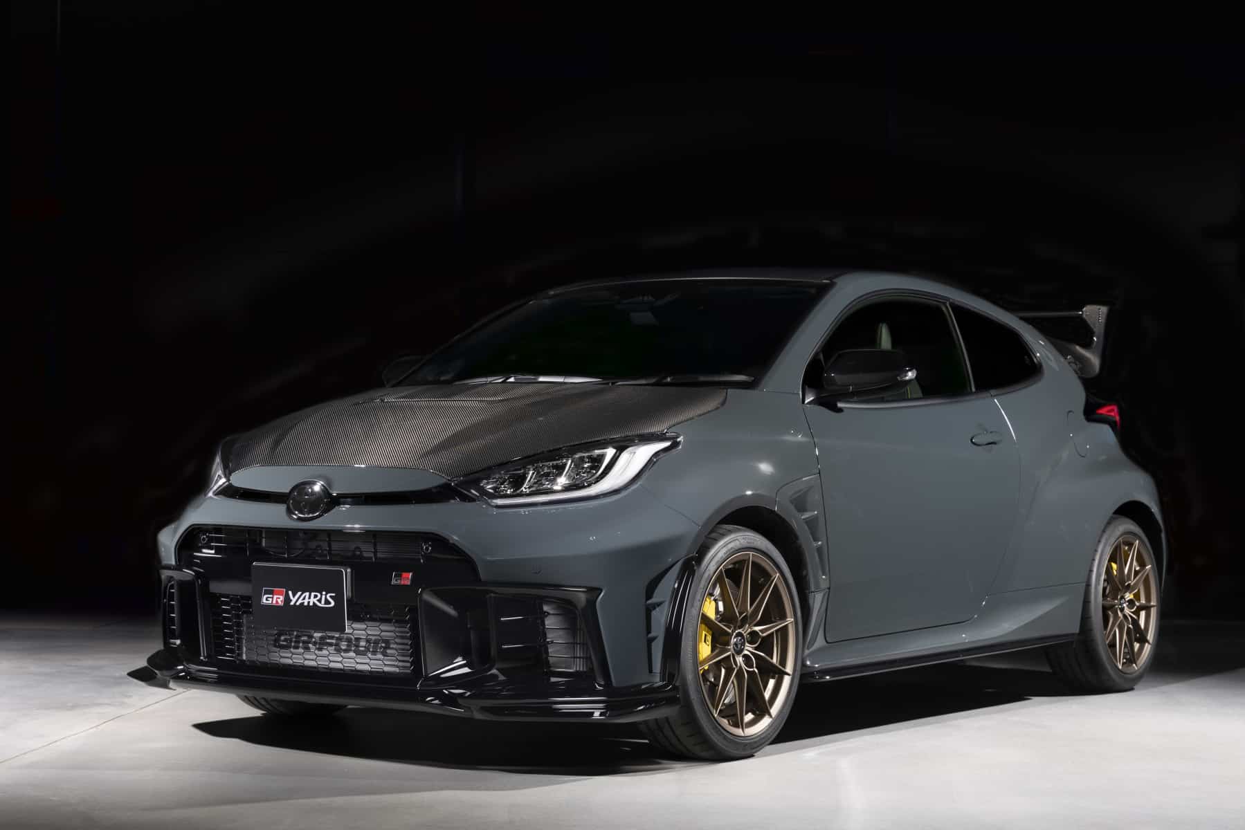 Quest’edizione speciale ha un look esterno caratterizzato da esclusivo alettone posteriore in fibra di carbonio, a cui aggiungono spoiler anteriore, gonne laterali e cofano anch’essi in carbonio. Gli esterni sono nell’esclusivo colore Gravel Khaki, con la griglia anteriore in Piano Black, mentre i cerchi in Bronzo Matte completano l’aspetto esterno, insieme alle pinze dei freni in giallo Morizo. Negli interni di questa speciale Toyota GR Yaris troviamo le cuciture in giallo Morizo, il volante con superficie in camoscio e diametro ridotto, con palette e tasti modificati per migliorare l’uso durante la guida sportiva. A bordo spicca anche una targhetta identificativa con il logo “Moziro RR” e il numero progressivo della serie.