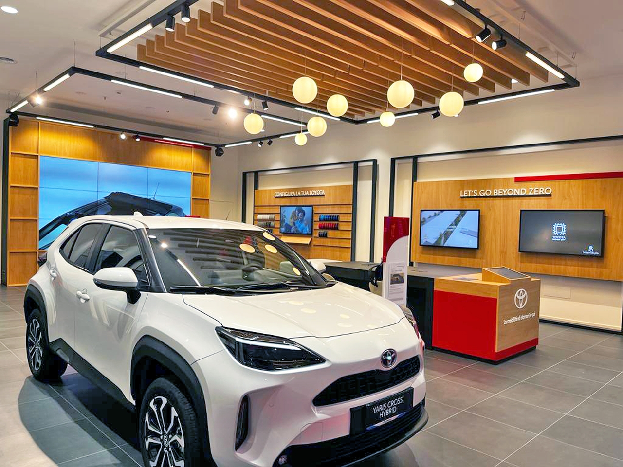 Le aree dedicate all’interno del nuovo showroom presentano l’intera gamma di prodotti e servizi proposti da Toyota, dai nuovi veicoli all’area Touch & Feel – dove il cliente può configurare la sua auto, alla piattaforma Beyond Zero – che evidenzia la leadership del costruttore giapponese nella mobilità sostenibile e nell’elettrificazione, fino all’area dedicata all’usato Toyota Approved e agli innovativi servizi di mobilità Kinto. Inoltre, è possibile effettuare il test drive della vettura preferita.