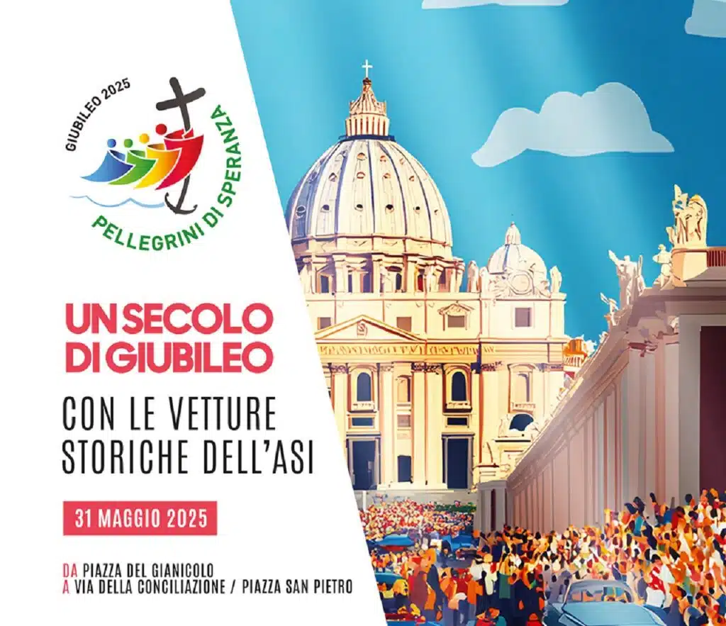 Per festeggiare un secolo di Giubileo, ASI il 31 maggio porterà in Piazza San Pietro alcune auto storiche in tema con quelli che sono i sette anni giubilari del secolo scorso: 1900, 1925, 1933, 1950, 1975, 1983 e 2000. Si tratterà di una selezione di modelli provenienti da musei prestigiosi come MAUTO, Museo Nicolis, Fondazione Nicola Bulgari e Museo Alfa Romeo Fratelli Cozzi.