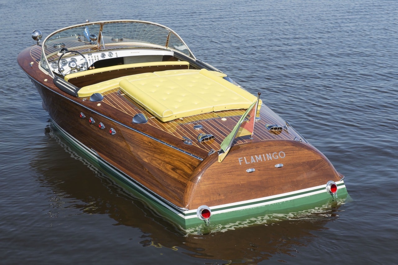 Oppure il Riva Tritone “Flamingo”, modello realizzato in 258 unità, il primo a montare 2 motori Chris Craft da 175 CV e il controllo dell’invertitore con manopole. Con una storia particolare, legato anche alla guerra civile in Mozambico, ritrovato a fine anni ’90 e con un restauro di ben 15 anni, per renderlo ora un Riva Tritone completamente revisionato ed unico al mondo.