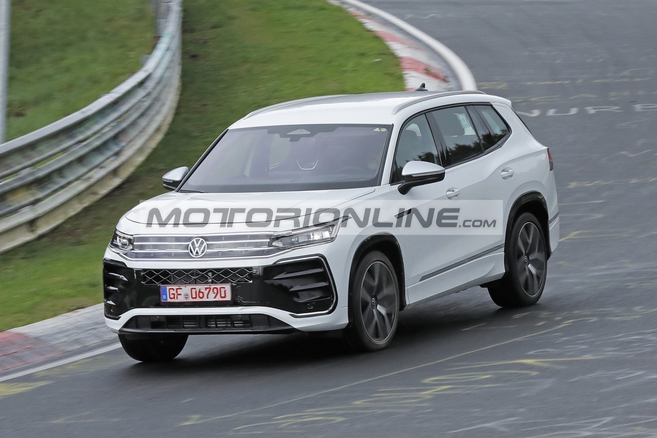 Proseguono i test della Volkswagen Tayron, il nuovo SUV a 7 posti del marchio tedesco. Dopo averlo visto qualche mese fa sulle nevi svedesi, ora il prototipo è impegnato sul circuito del Nurburgring per i test di collaudo ad alta velocità. Già in vendita in Cina con la prima generazione, questa seconda arriverà anche in Europa.